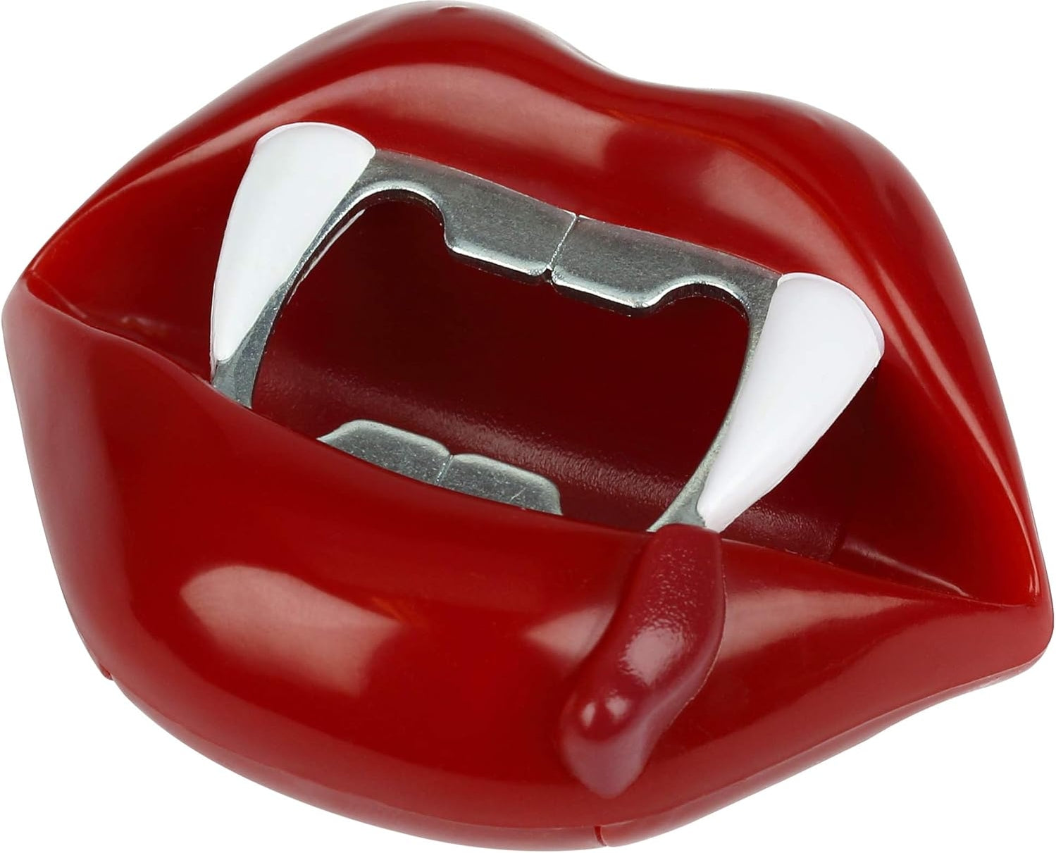 Plastic & metal -Easy to use -Vampire teeth bottle opener -Handheld bottle cap popper features ruby red mouth with Dracula fangs and teeth as opener -Enjoy cold beverages using this handy gothic gadget The vampire teeth beer bottle opener is standard-issue equipment for bartenders in Transylvania, so you know it's perfect for cracking open some ice cold spooky suds. made from durable plastic with solid metal fangs for hassle-free popping of your bottle tops, this is one vampire that doesn't suck. It's perfect for Halloween parties, twilight marathons, or any old undead day in your haunted home bar. Why bother with a boring old bottle popper when you can drink like Dracula? get this vampire teeth bottle opener in your hot little hands today.